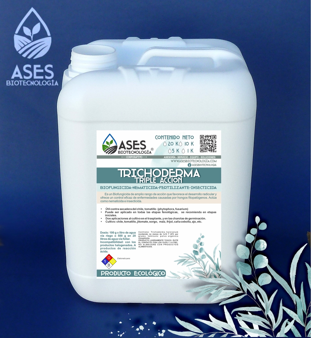 Es un Biofungicida de amplio rango de acción que favorece el desarrollo radicular y ofrece un control eficaz de enfermedades causadas por hongos fitopatógenos. Actúa como nematicida e insecticida.