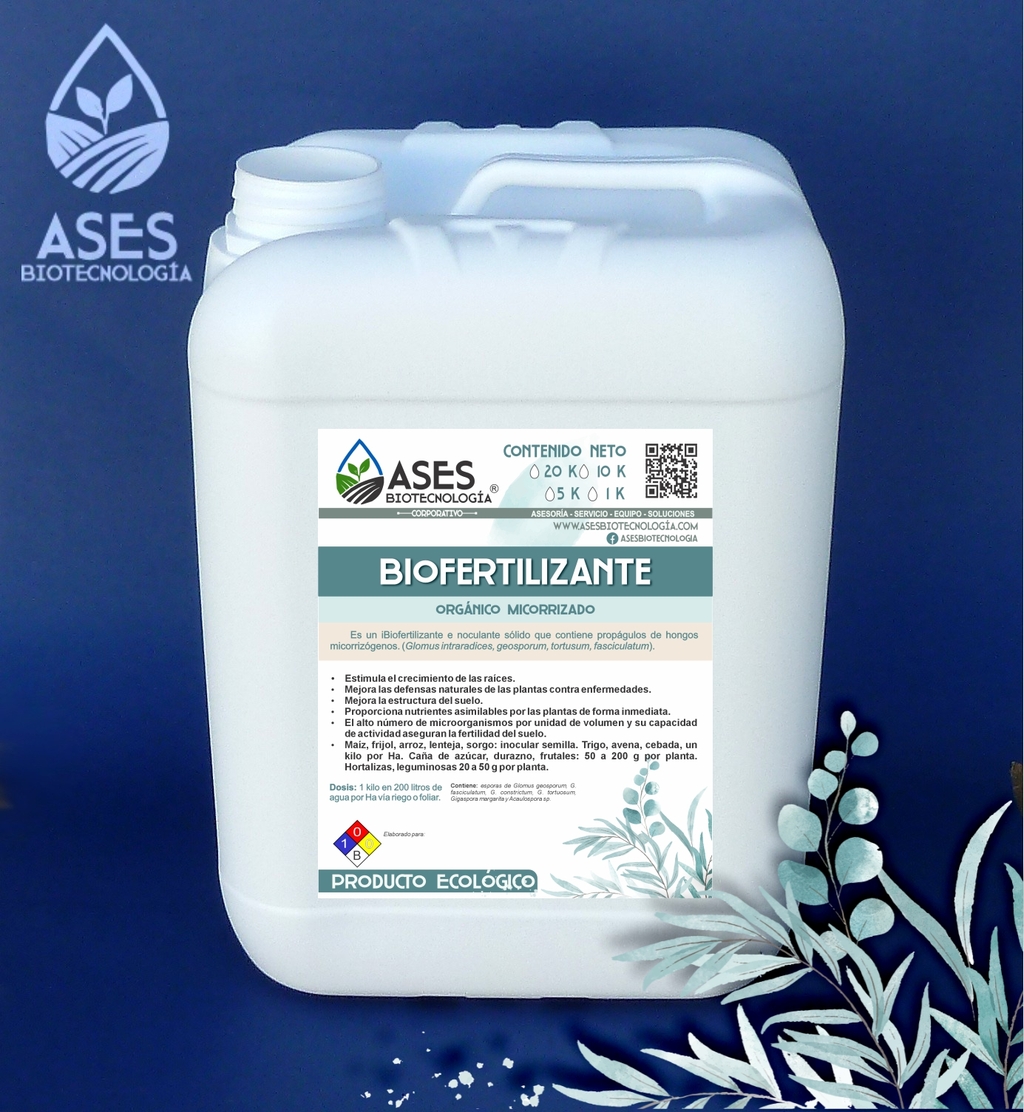 Es un Biofertilizante que contiene propágulos de hongos micorrizógenos, esporas de Trichoderma, ácidos húmicos y fúlvicos, microelementos, algas marinas y aminoácidos.